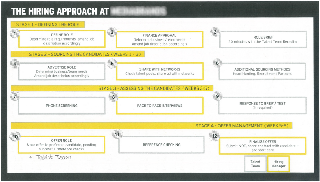 Further research was required to better understand the design problem. Ethnographic studies were conducted within the talent acquisition and HR advisory team which led to a more detailed picture of the problems to be addressed.